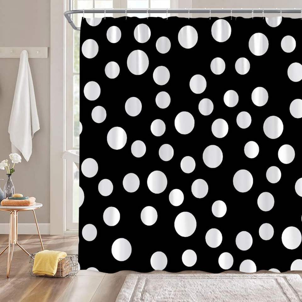 ม่านอาบน้ำลายจุดสีแดงและสีขาวย้อนยุคพร้อมลายเส้นฮิปปี้น่ารักรูปทรงเรขาคณิตทรงกลมลวดลายเรขาคณิตแบบวินเทจของตกแต่งบ้านในห้องน้ำ