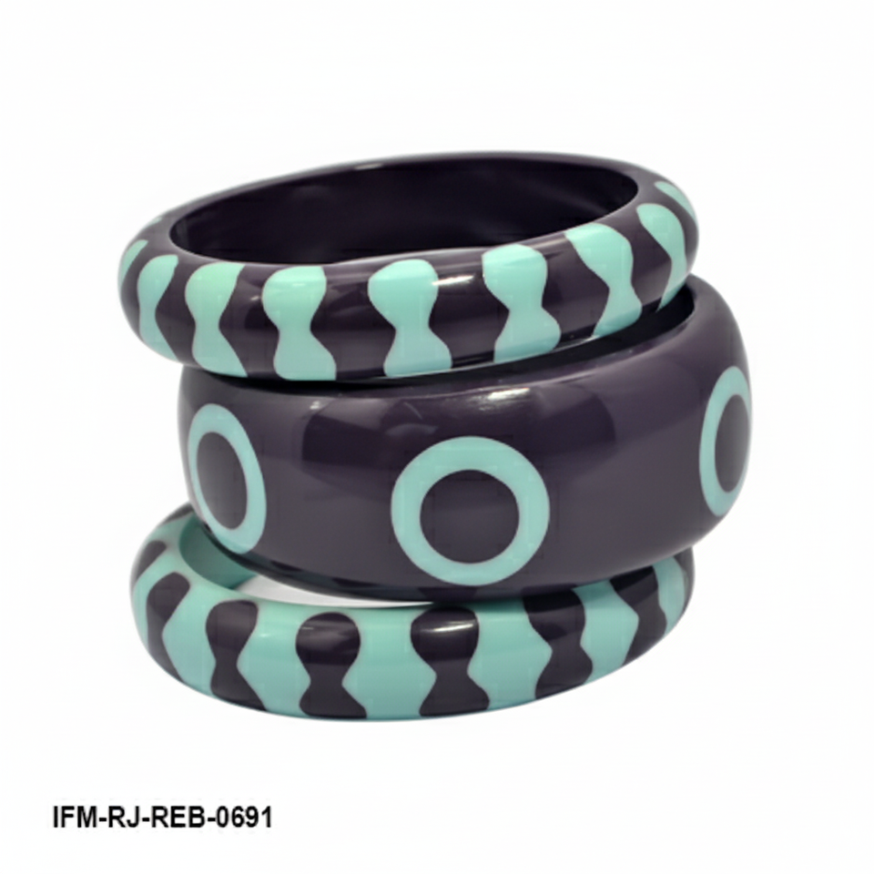ชุดกำไลเรซิ่นสไตล์เรโทร 3 ชิ้น สีเทอร์ควอยซ์และสีพลัมเข้ม ลายเรขาคณิต สามารถสวมซ้อนกันได้ ของขวัญสำหรับเธอ