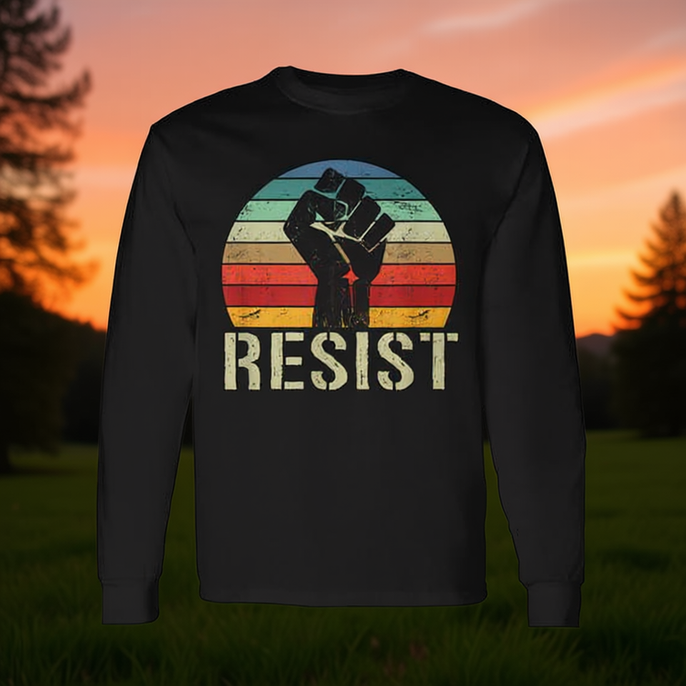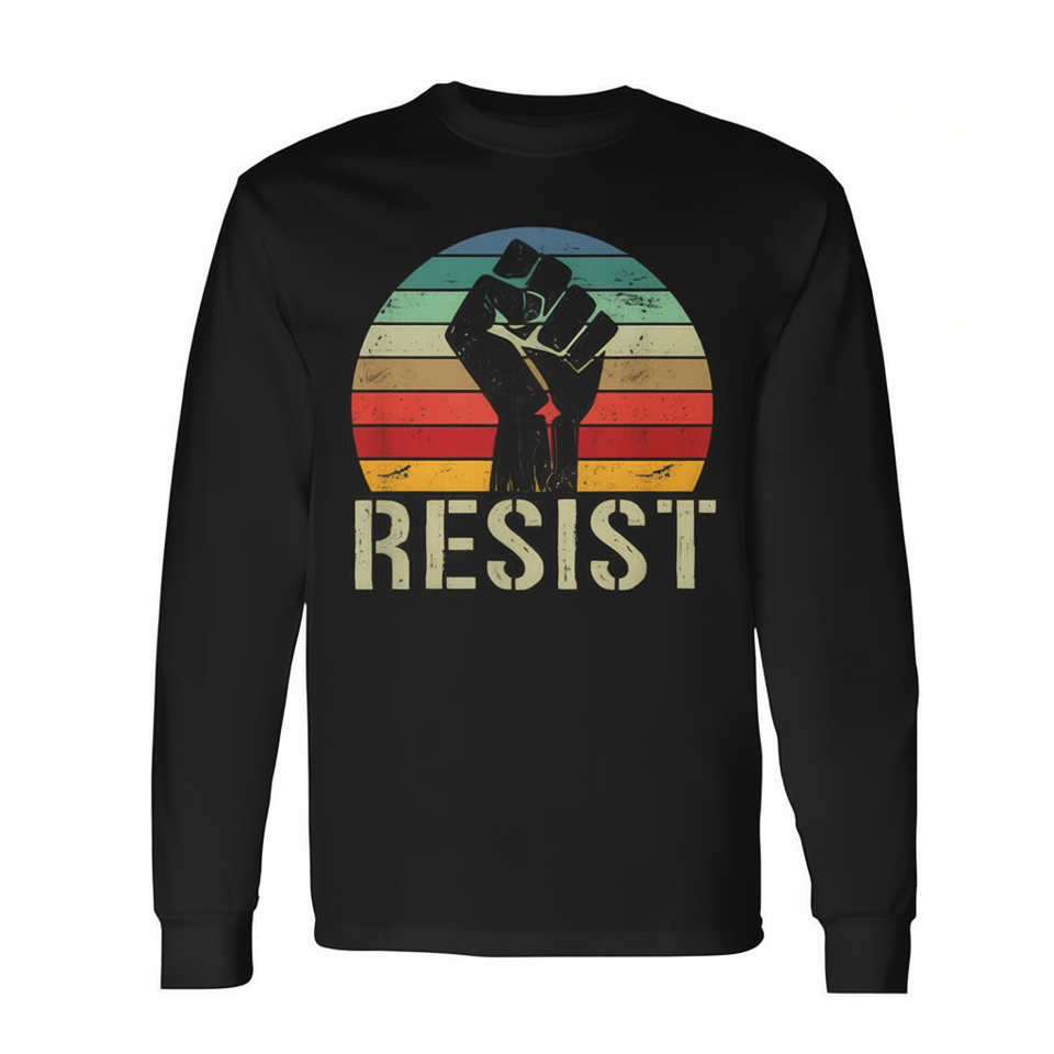 เสื้อยืดแขนยาวเรโทร รีสต์ ฟิสท์ ยูนิเซ็กส์ ผู้ใหญ่ ไซส์ M L XL XXL