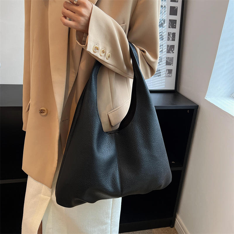 กระเป๋าสะพายไหล่เดี่ยวทรงเรโทรเรียบง่ายสำหรับผู้หญิง ความจุมาก ซิปปิด แฟชั่นใหม่ หนังบุโพลีเอสเตอร์ สะพายใต้วงแขน เหมาะสำหรับนักเรียน