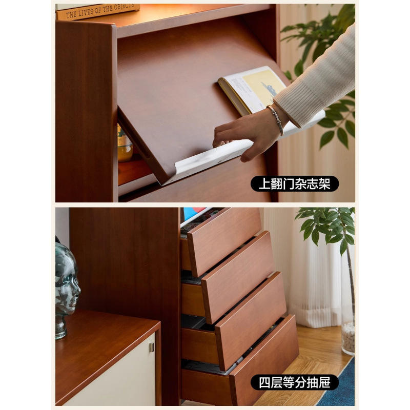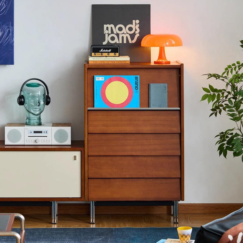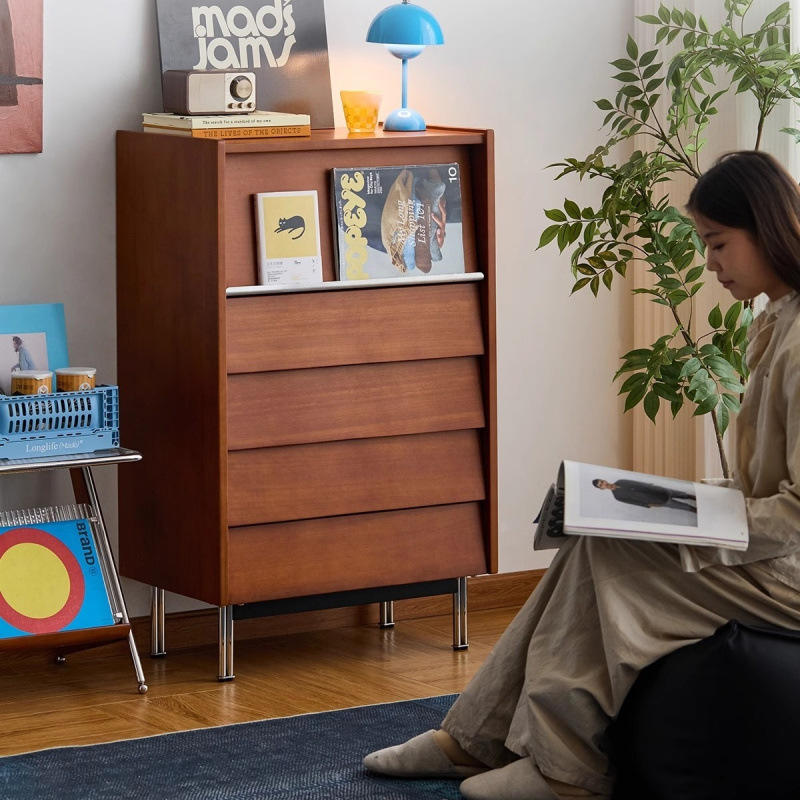 ตู้ลิ้นชักไม้เนื้อแข็งสไตล์เรโทร 5 ชั้น ตู้เก็บของแบบเรียบง่ายสำหรับบ้าน ห้องนอน ห้องนั่งเล่น