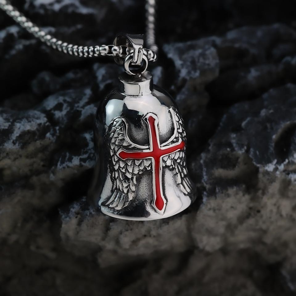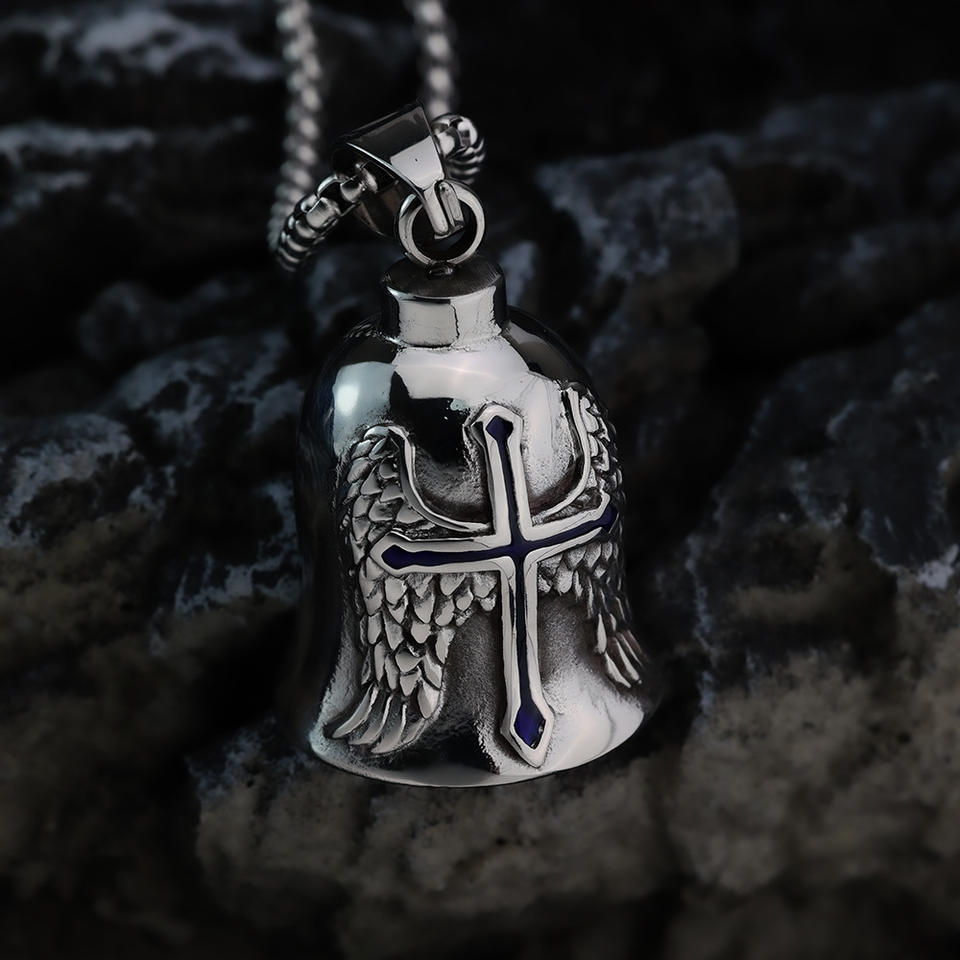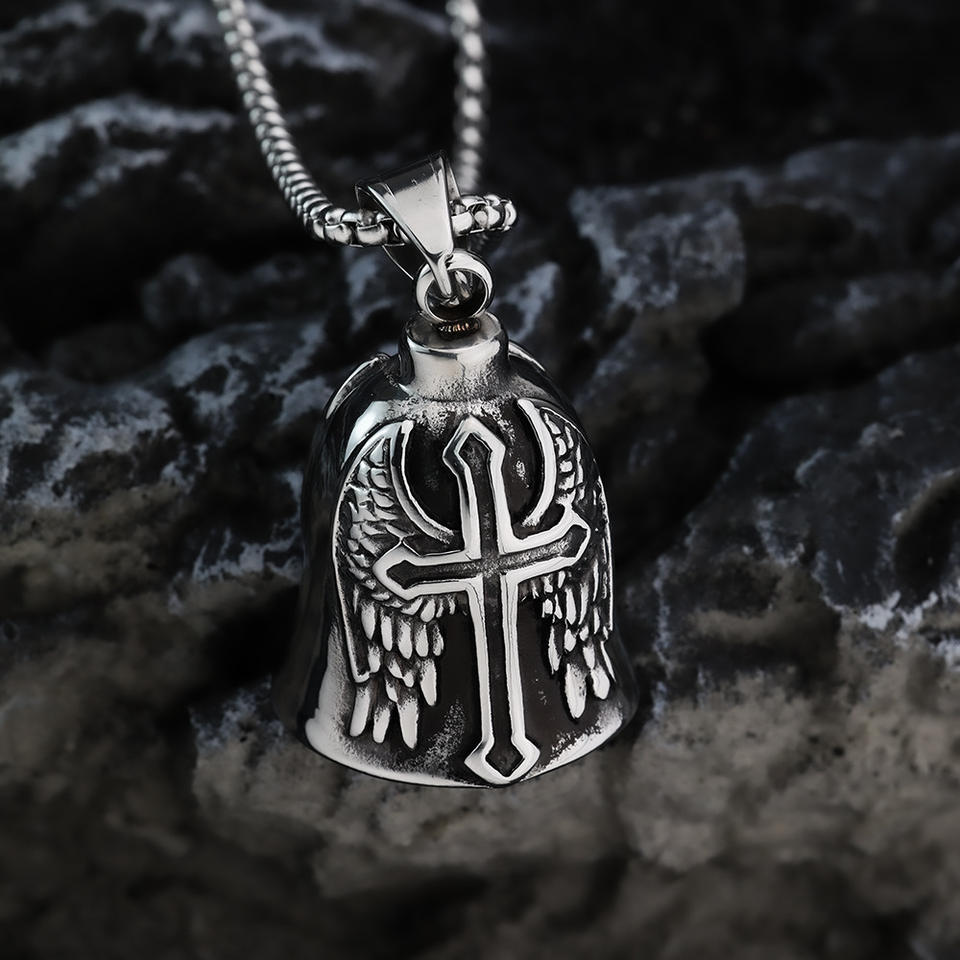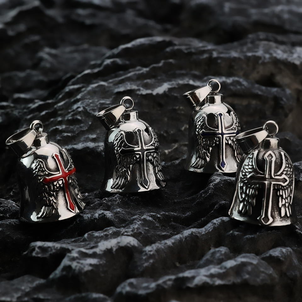 จี้กระดิ่งสแตนเลสสไตล์เรโทรพร้อมดีไซน์กากบาทอีพ็อกซี่สำหรับเป็นของขวัญเครื่องประดับสไตล์มอเตอร์ไซค์