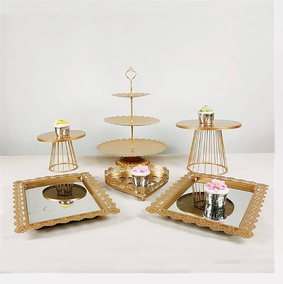 แท่นวางเค้กสีทองแบบคลาสสิกย้อนยุคหรูหราไร้กาลเวลาสำหรับงานเลี้ยงงานแต่งงานที่โรแมนติก