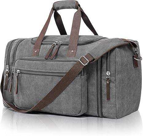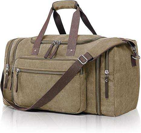 กระเป๋าเดินทางผ้าแคนวาสสไตล์เรโทร ความจุสูง สำหรับเดินทางค้างคืนหรือวันหยุดสุดสัปดาห์ พร้อมช่องซิปด้านข้างและระบบปิดซิปที่ปลอดภัย