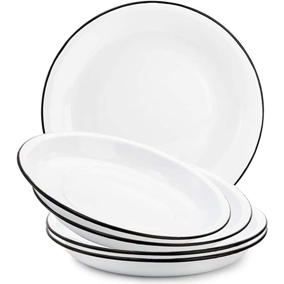 จานรองอาหารเคลือบสีสไตล์เรโทร | ถาดเสิร์ฟตกแต่งขอบขาวดำขนาด 12 นิ้ว สำหรับตกแต่งโต๊ะงานแต่งงานสไตล์ฟาร์มเฮาส์