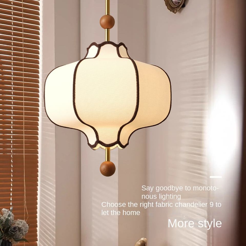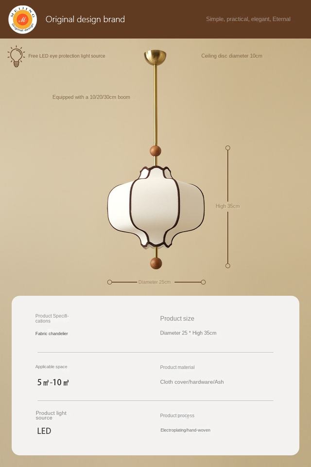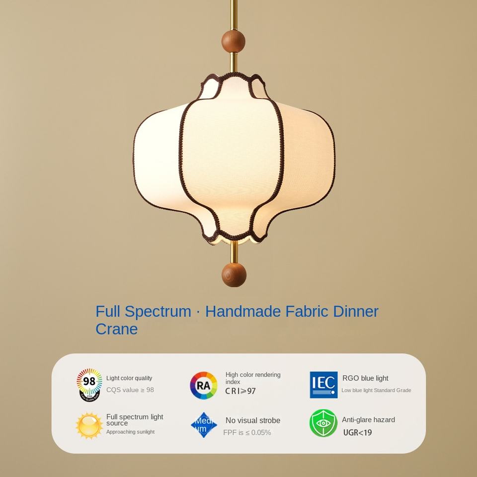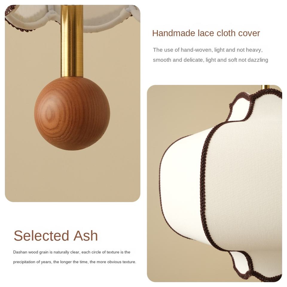 โคมไฟ LED ลายฝรั่งเศสสไตล์เรโทร โคมไฟระย้า ดีไซน์ผ้าและไม้ สำหรับตกแต่งห้องนอน ร้านอาหาร บาร์