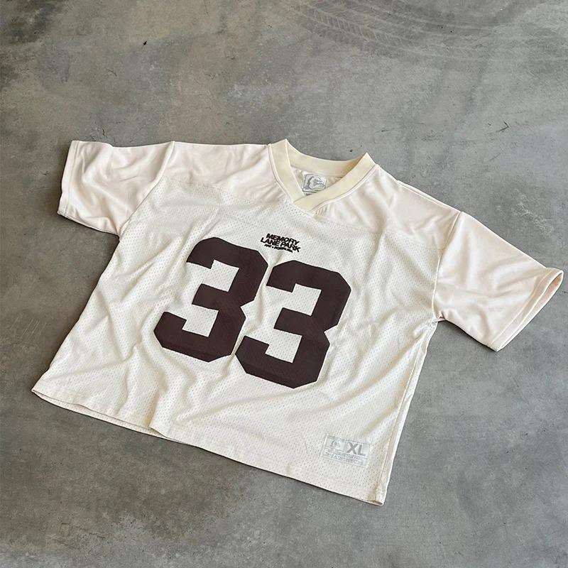 เสื้อฟุตบอลสไตล์เรโทรทรงหลวม ผ้าตาข่าย แขนสั้น พิมพ์ลายได้ตามต้องการ ขายส่ง คอลเลคชั่นฤดูร้อน บริการ OEM
