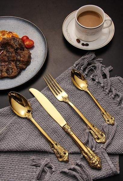 สไตล์ย้อนยุคชุดช้อนส้อมชุบทองกุหลาบสแตนเลสเครื่องเงินหรูหราพร้อมฝาปิดช้อนส้อมนํากลับมาใช้ใหม่ที่มียอดขายสูงสุดจากอินเดีย