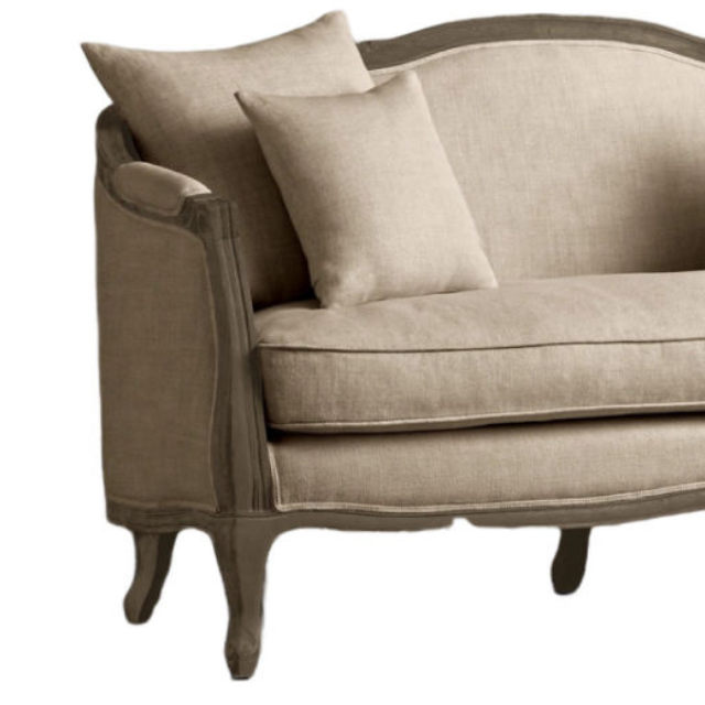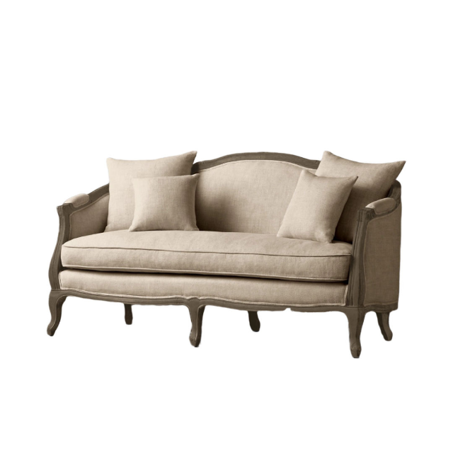 โซฟาไม้เนื้อแข็งสไตล์เรโทรสีเทาพร้อมโครงไม้สักแบบดูเก่า