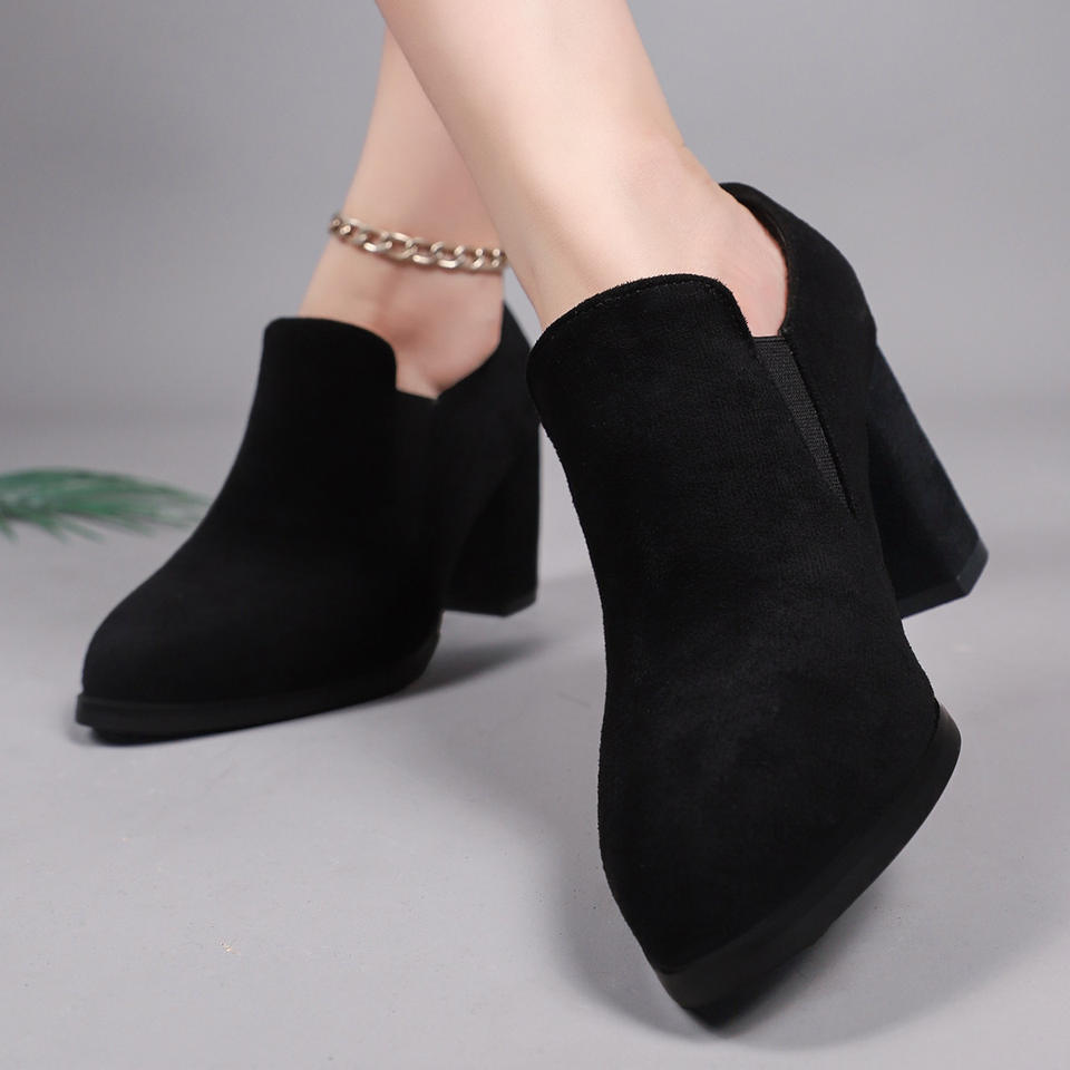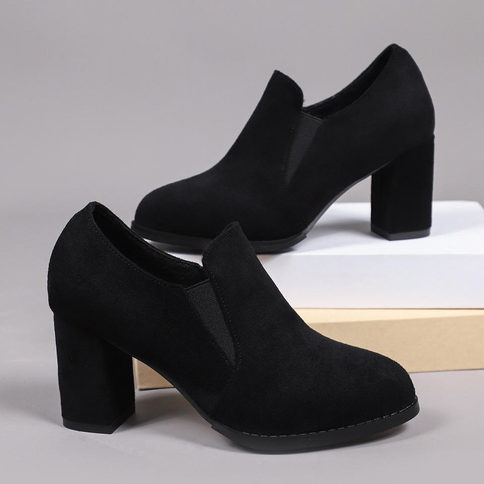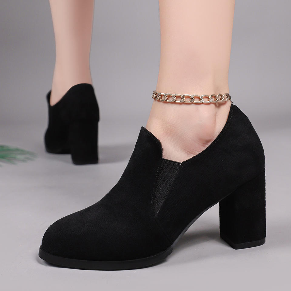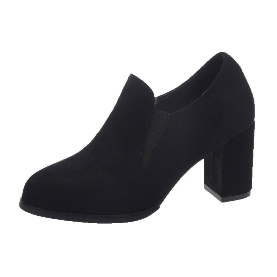 รองเท้าส้นเตี้ยทรงหัวแหลมสไตล์อังกฤษ หนังกลับแบบเรโทร ไซส์ใหญ่ ปากรองเท้าลึก ส้นหนา สำหรับผู้หญิง ฤดูใบไม้ร่วง