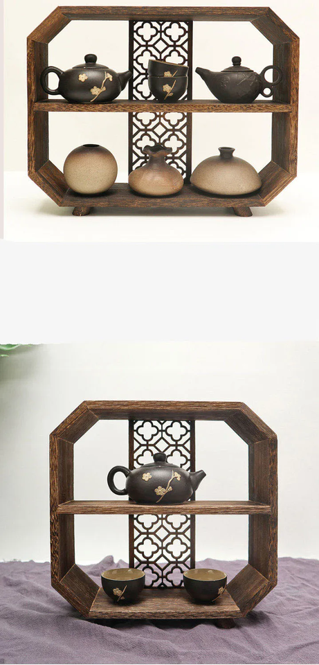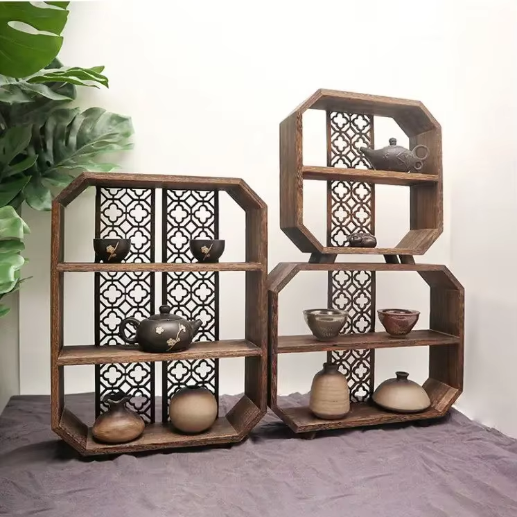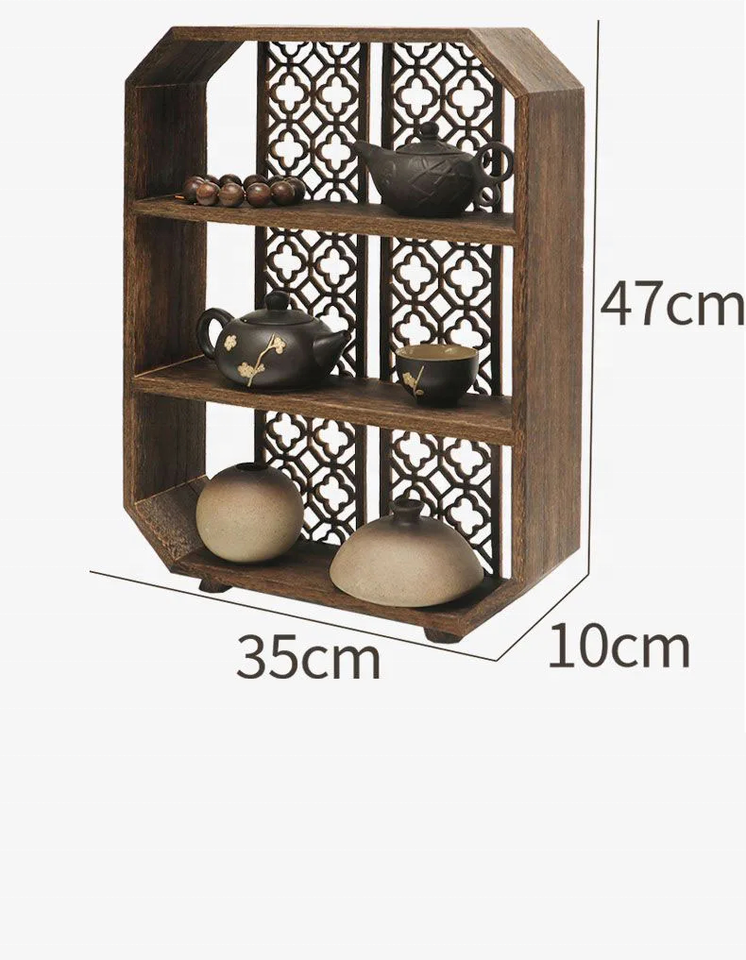ชั้นวางกาน้ำชาแบบย้อนยุค ชั้นวางของบนโต๊ะทำงานไม้ดีไซน์สร้างสรรค์ ของตกแต่งบ้านอเนกประสงค์