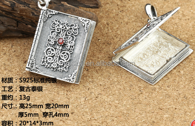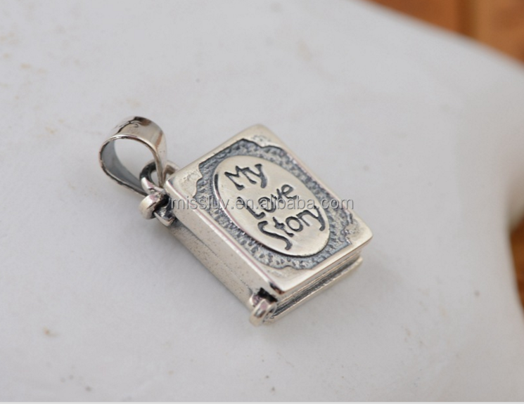 จี้เงินแท้สไตล์ไทยโบราณรูปสมุดบันทึก จี้เงินสเตอร์ลิงเรื่องราวความรักของฉัน สำหรับสาวๆ