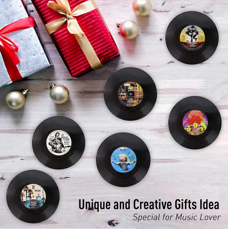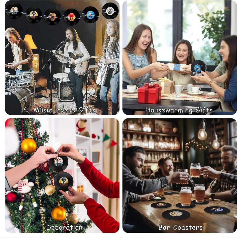 แผ่นรองแก้วไวนิลสไตล์เรโทร ลายเพลงยุค 80 สำหรับป้องกันโต๊ะ ของขวัญสุดพิเศษสำหรับคนรักดนตรี ของขวัญขึ้นบ้านใหม่