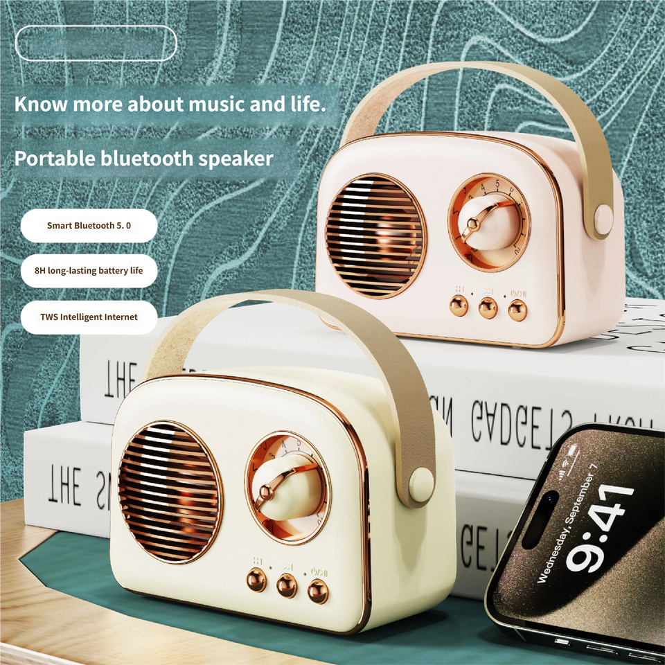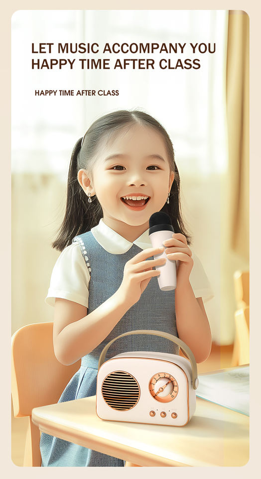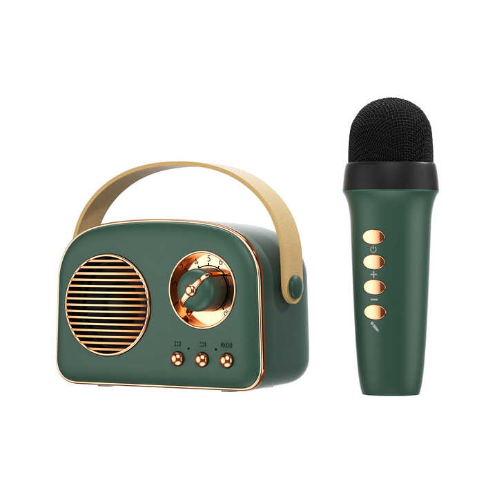 ไมโครโฟนไร้สายสไตล์เรโทร คาราโอเกะพกพา วิทยุ FM รองรับการ์ด TF เสียงสเตอริโอ TWS เล่นผ่าน AUX ลำโพงบลูทูธ
