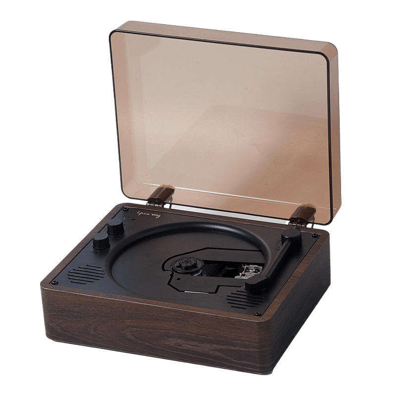 เครื่องเล่นซีดีไม้สไตล์เรโทร ฝาครอบกันฝุ่นแบบโปร่งใส ของตกแต่งโต๊ะทำงาน เครื่องเล่นเพลงคุณภาพสูง พร้อมปุ่มปรับระดับเสียง