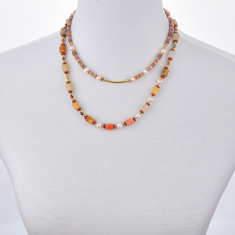 สร้อยคอลูกปัดสไตล์ย้อนยุคและแฟชั่นผสมผสานกับหินธรรมชาติสีทองมุกสำหรับเทศกาลและลุคสบายๆ