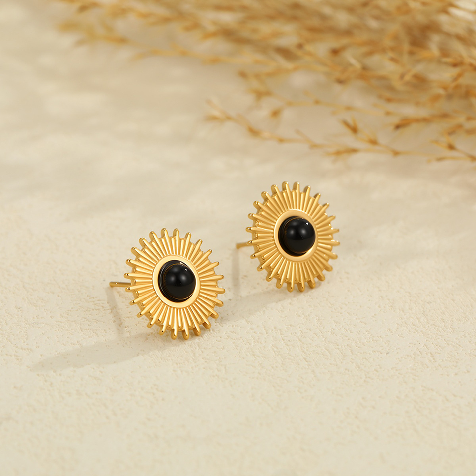 ต่างหูหินธรรมชาติรูปดวงอาทิตย์สแตนเลสสีทองสไตล์เรโทร ให้ความรู้สึกหรูหราและมีระดับ