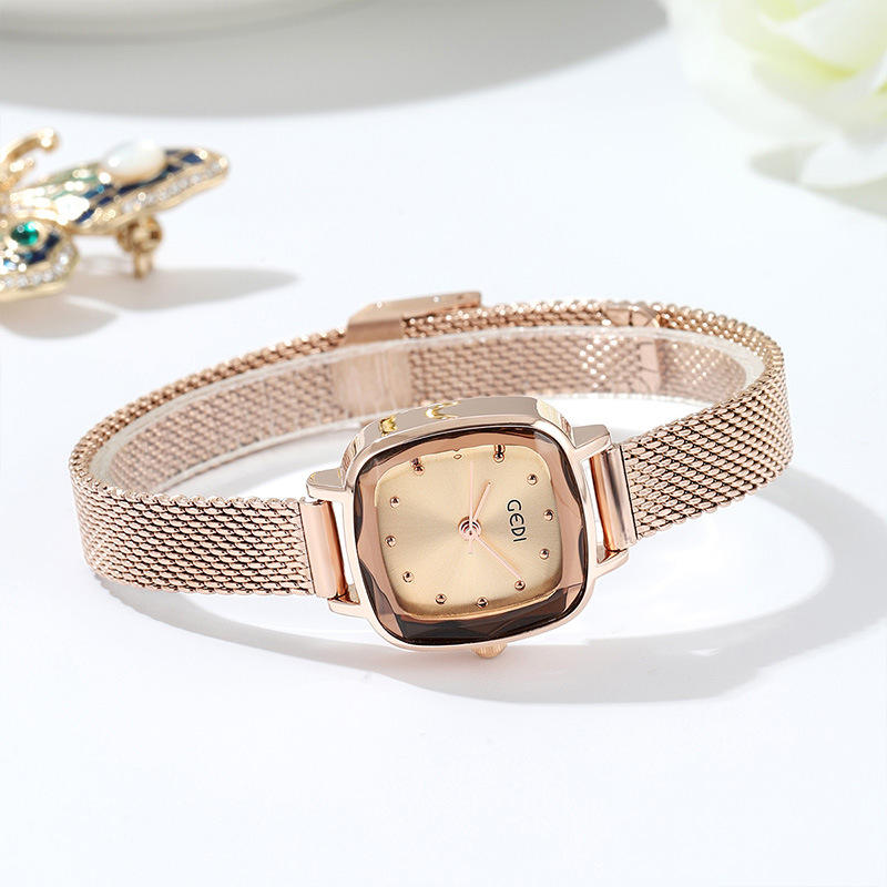 นาฬิกาข้อมือผู้หญิงแบบตาข่ายย้อนยุคนาฬิกาข้อมือควอตซ์แบบเรียบง่ายและใช้งานได้หลากหลาย