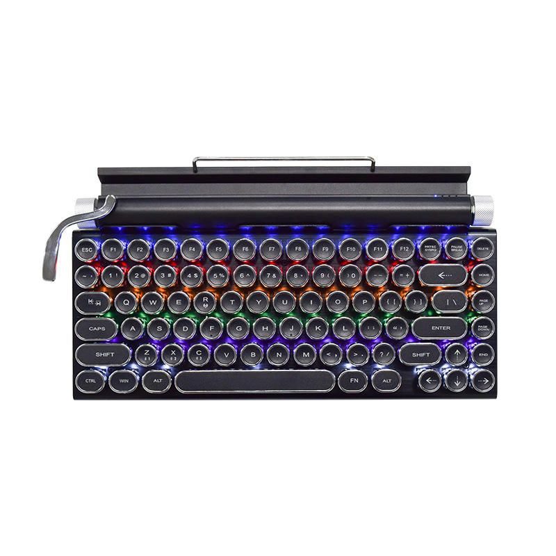 คีย์บอร์ดเกมเครื่องพิมพ์ดีดไร้สายสไตล์พังก์ย้อนยุค83คีย์สำหรับ windows/mac/pc/laptop/ipad สีชมพู