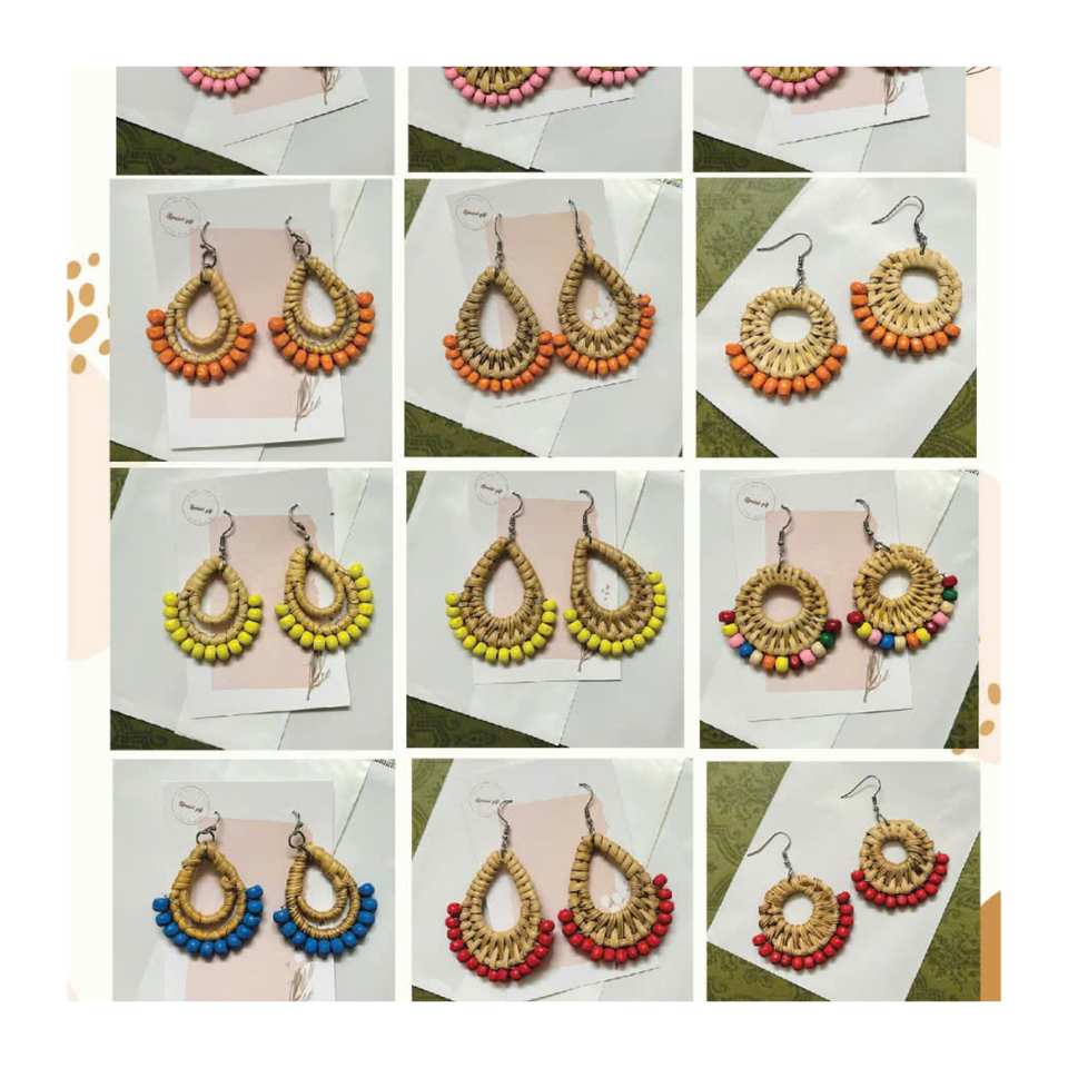 ต่างหูหวายย้อนยุค Boho ชิ้นที่มีการออกแบบหวายที่ไม่ซ้ำกันต่างหูฟางทำด้วยมือธรรมชาติต่างหูหยดน้ำตา