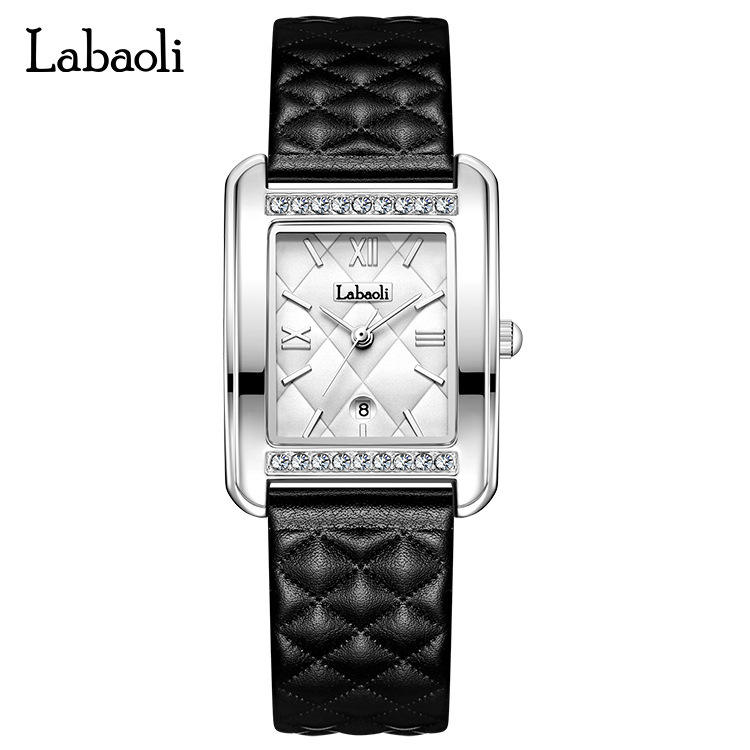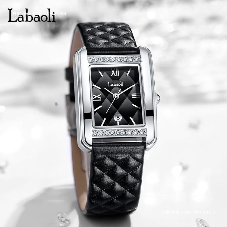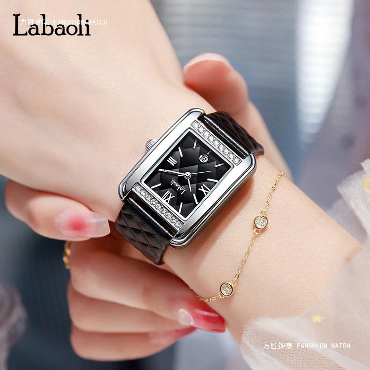 นาฬิกาควอตซ์เหลี่ยมสไตล์มินิมอลย้อนยุคพร้อมสายหนังคลาสสิก