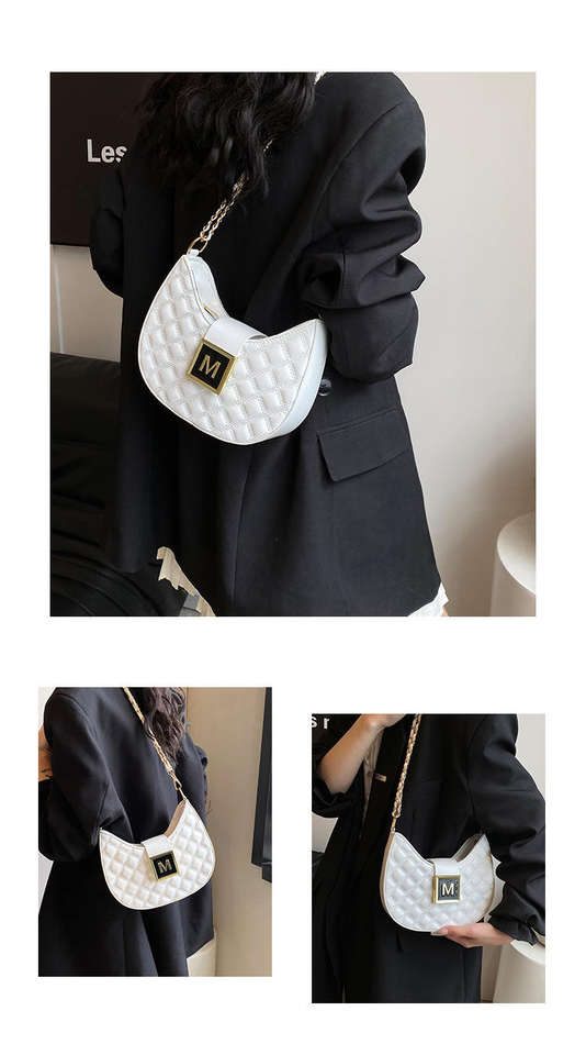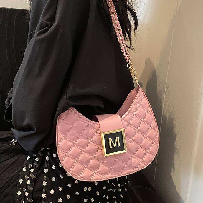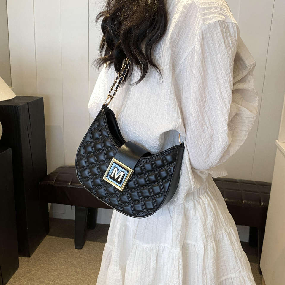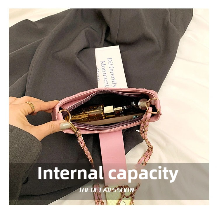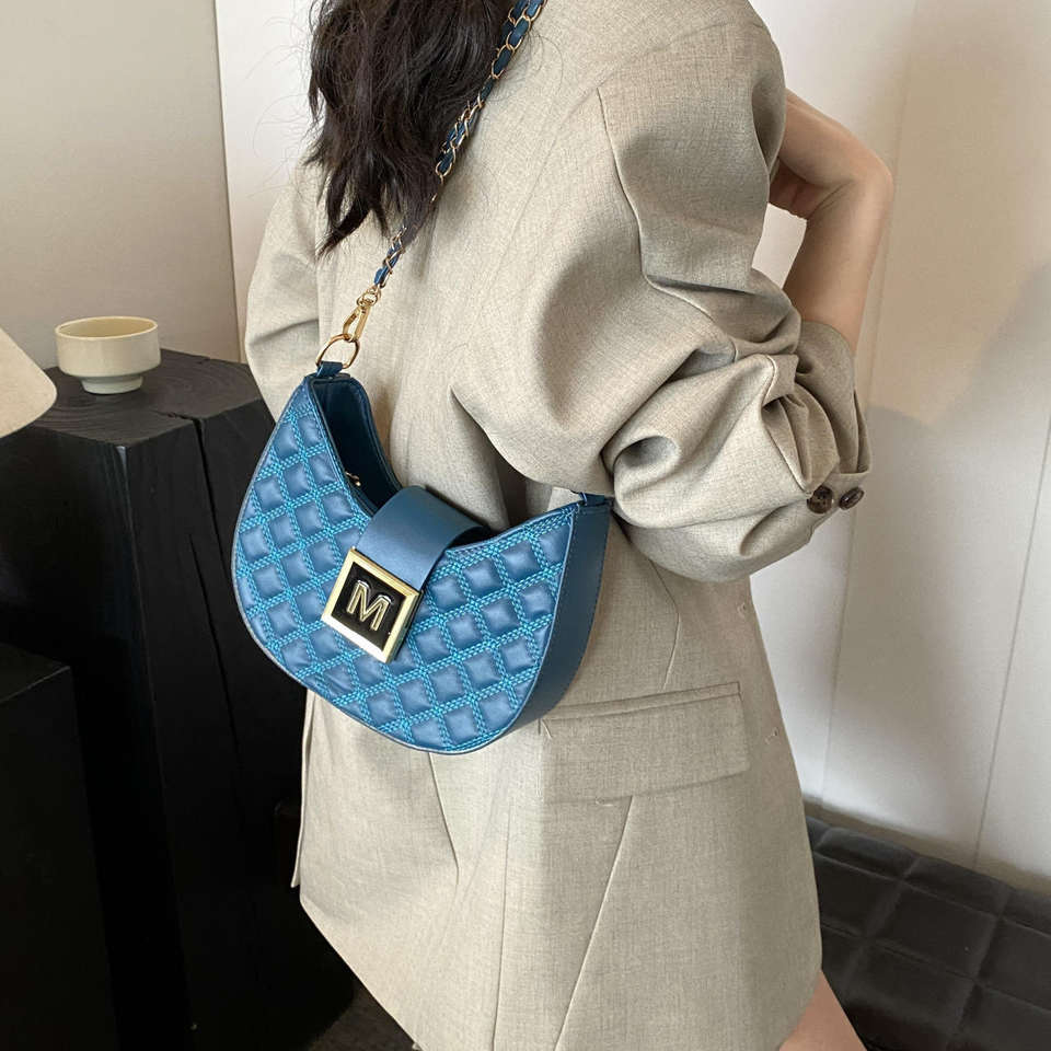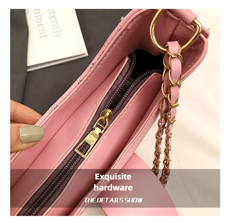 กระเป๋าสะพายไหล่สตรีสไตล์เรโทร กระเป๋าสะพายไหล่สตรีลายตารางเพชรแฟชั่นพร้อมซิปโซ่