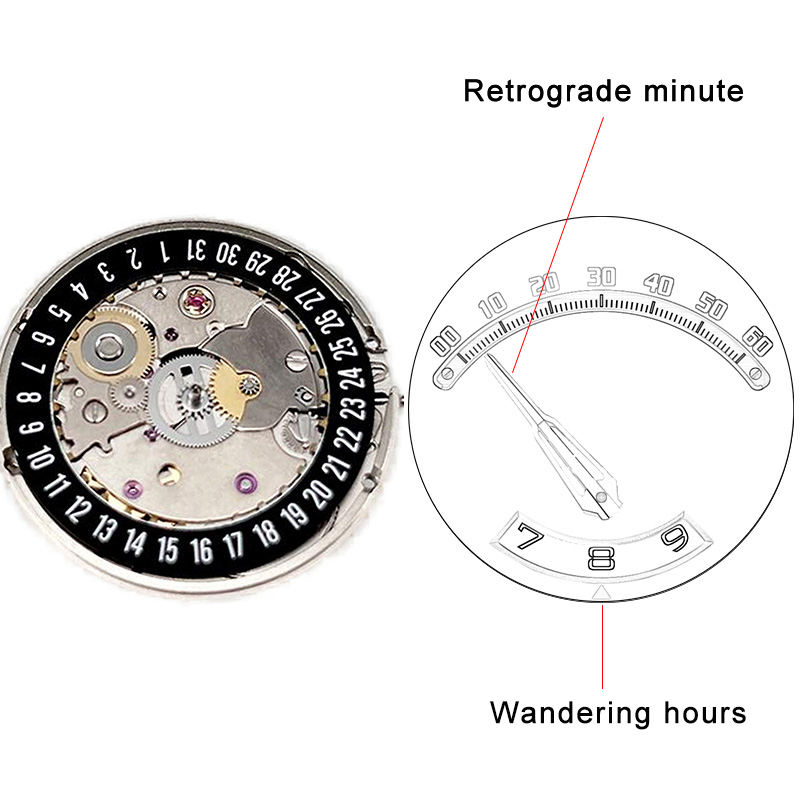 Retrograde Minutes Hand and Wandering Hours Mechanism