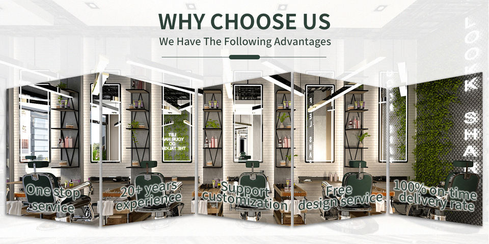 ร้านเสริมสวยสไตล์เรโทร พร้อมเคาน์เตอร์หินอ่อนปรับแต่งได้ ไฟ LED สวยงาม เป็นมิตรกับสิ่งแวดล้อม และกันน้ำ
