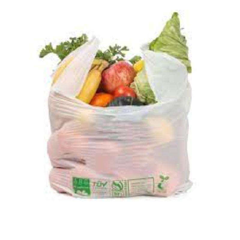 ถุงช้อปปิ้งแป้งข้าวโพด100% แบบสั่งทำสำหรับร้านขายของชำและใช้ในเชิงพาณิชย์
