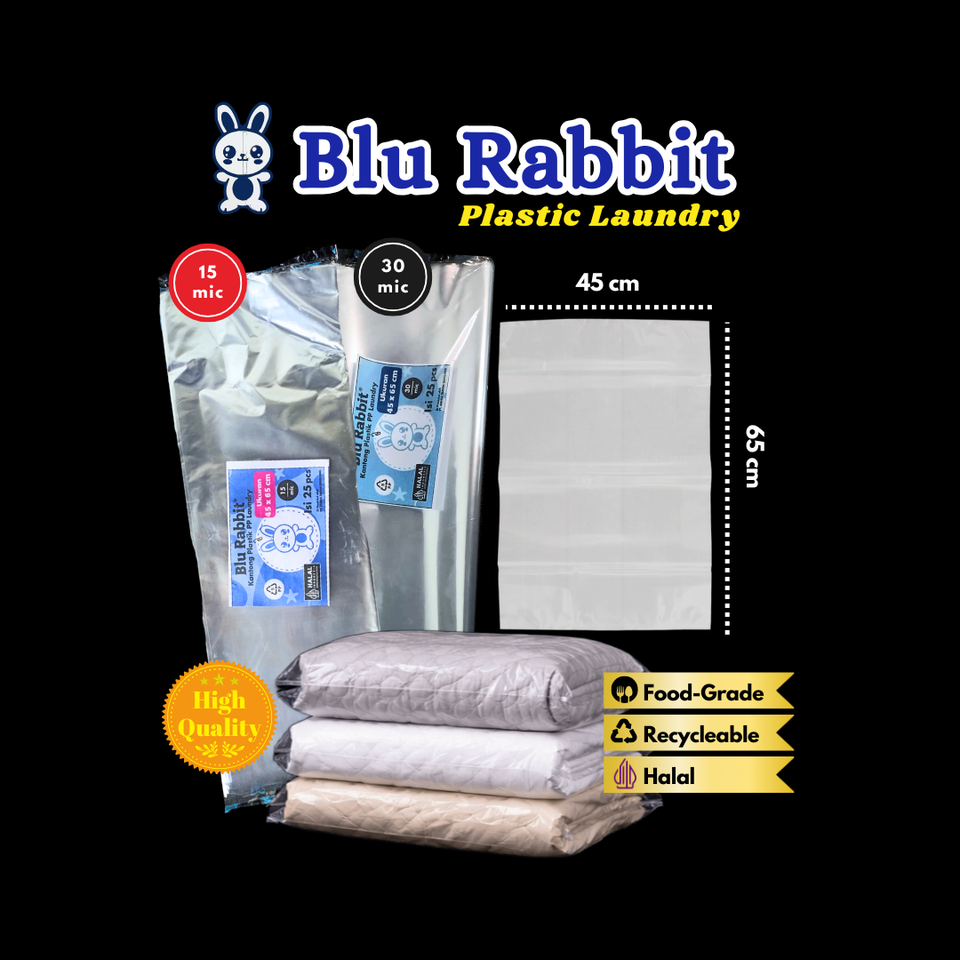 ถุงซักผ้าพลาสติก PP โพลีโพรพิลีน ขนาดใหญ่ 45 x 65 ซม. หนา 30 ไมครอน ใช้ซ้ำได้ ผลิตในอินโดนีเซีย