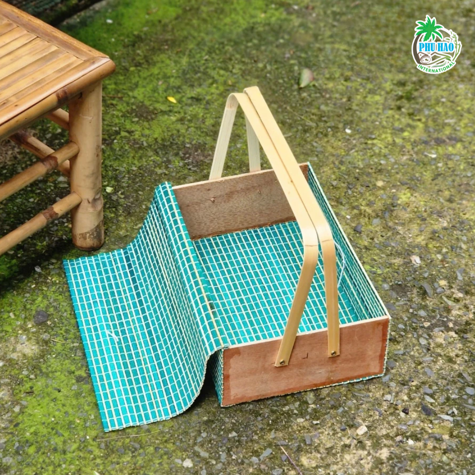ตะกร้าผลไม้ไม้ไผ่ใช้ซ้ำได้พร้อมฝาปิดและมือจับเหมาะสำหรับตกแต่งบ้านและห่อของขวัญตกแต่งบ้านงานฝีมือจากเวียดนาม