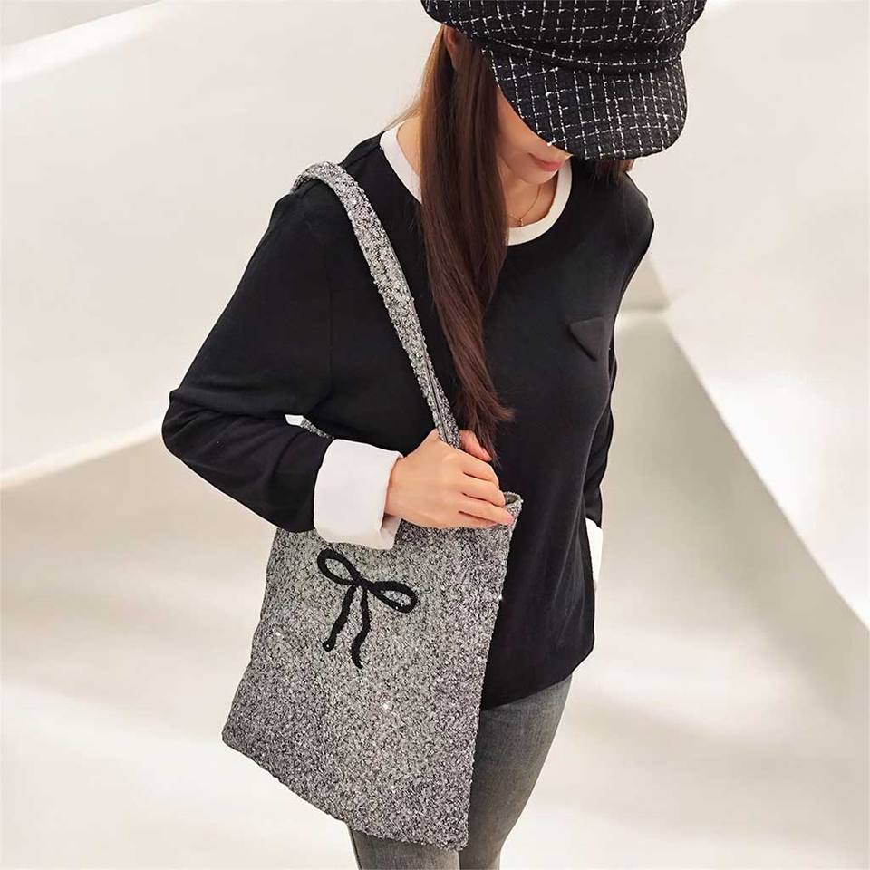 กระเป๋าที่นำกลับมาใช้ใหม่ได้พร้อมโบว์สีดำ
