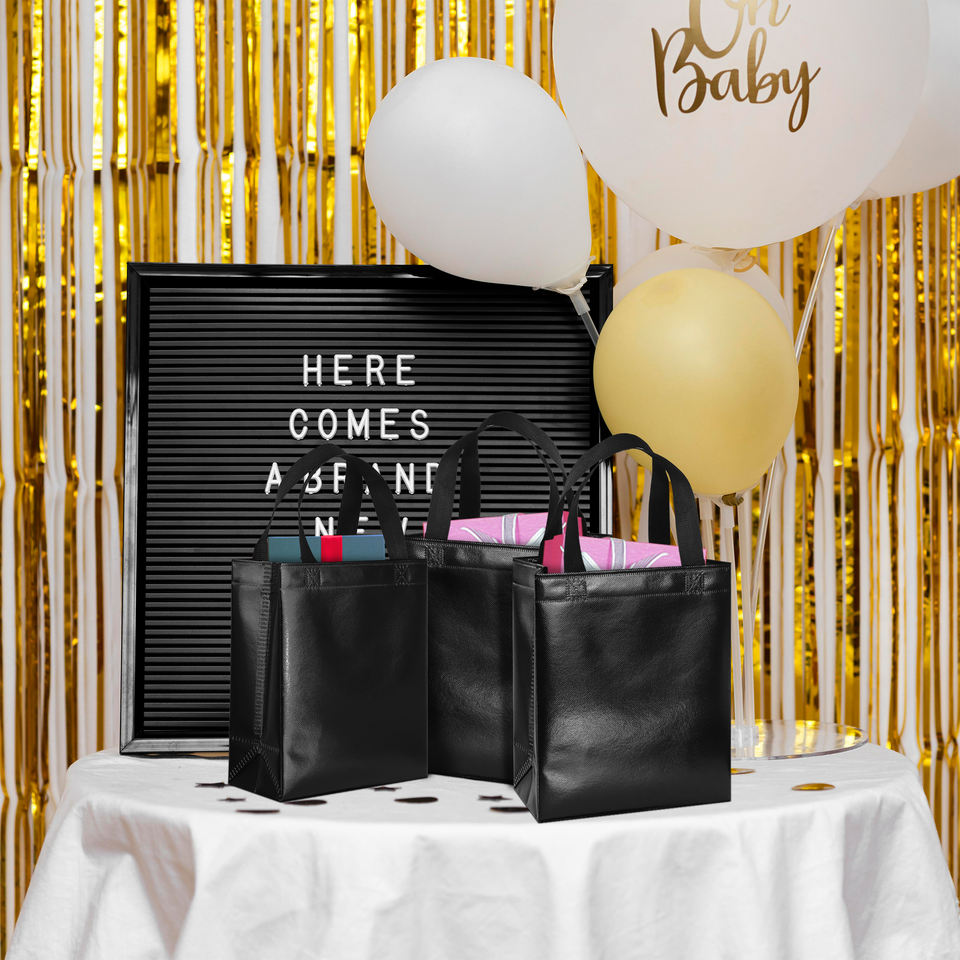 ถุงผ้าสปันบอนด์สีดำกันน้ำแบบใช้ซ้ำได้ - ถุงช้อปปิ้ง/ใส่ของชำพิมพ์โลโก้ตามสั่ง ทนทาน สำหรับงานขายปลีก/งานส่งเสริมการขาย
