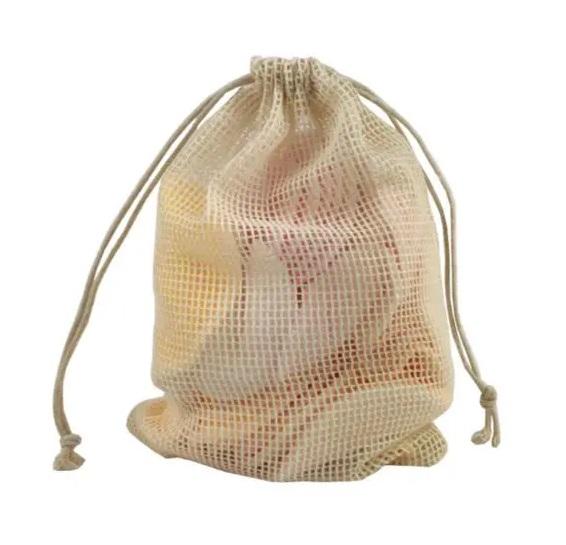 ถุงตาข่ายอินทรีย์ย่อยสลายได้เป็นมิตรต่อสิ่งแวดล้อมถุงตาข่ายคอตตอนแบบปรับแต่งโลโก้ได้