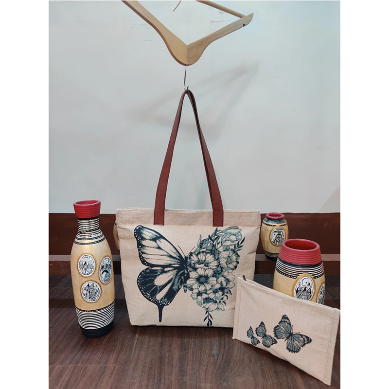 กระเป๋าผ้าแคนวาสผ้าฝ้ายปอกระเจาแบบใช้ซ้ำได้พร้อมลายพิมพ์ กระเป๋าแฟชั่นที่ยั่งยืนสำหรับใช้ในชีวิตประจำวันและไลฟ์สไตล์ลำลอง