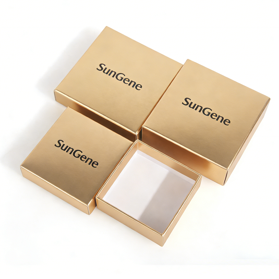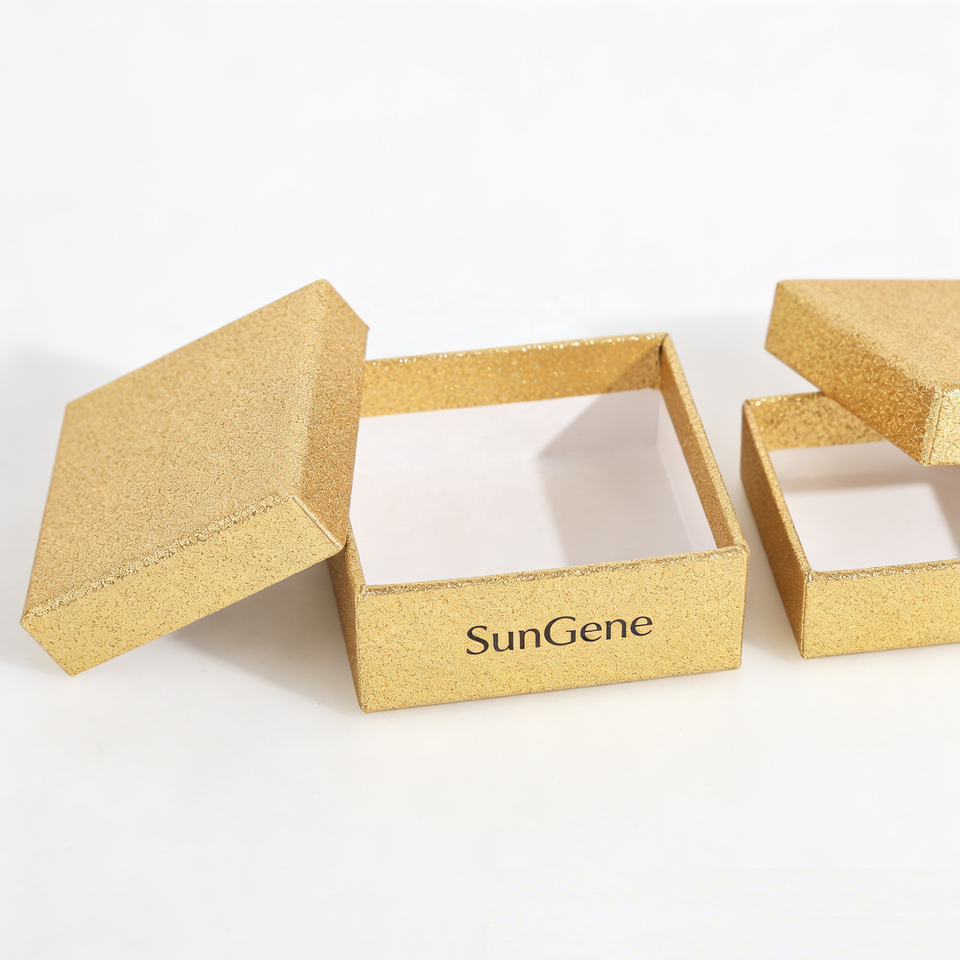 กล่องของขวัญหรูหราแบบแข็งสองชิ้น ฝาสีทอง ฐานสีทอง สำหรับบรรจุภัณฑ์เครื่องประดับสร้อยคอ ใช้ซ้ำได้