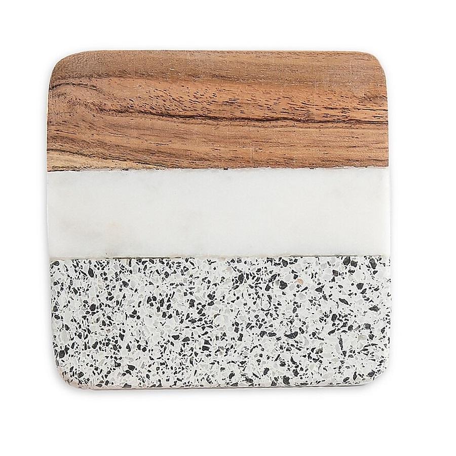 ที่รองแก้วไม้หินอ่อนแบบใช้ซ้ำได้แผ่นรองแก้วและแผ่นรองแก้วทำจากไม้รูปทรงสี่เหลี่ยมลายเรียบหรูพร้อมขอบทรงกลมสำหรับเครื่องดื่ม