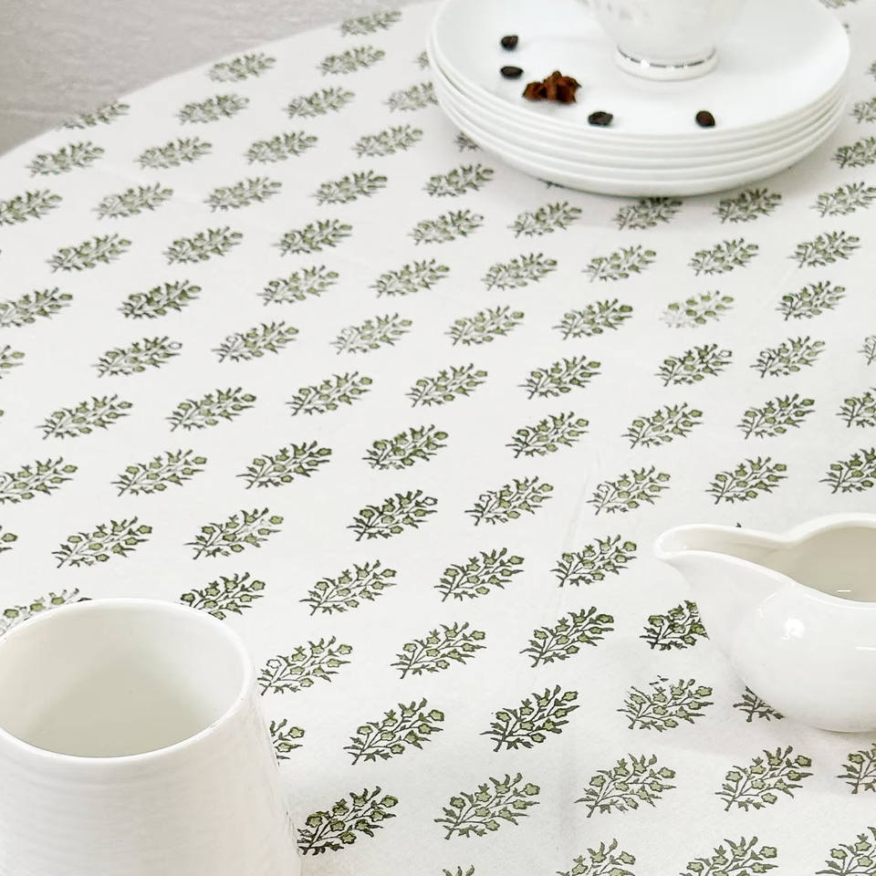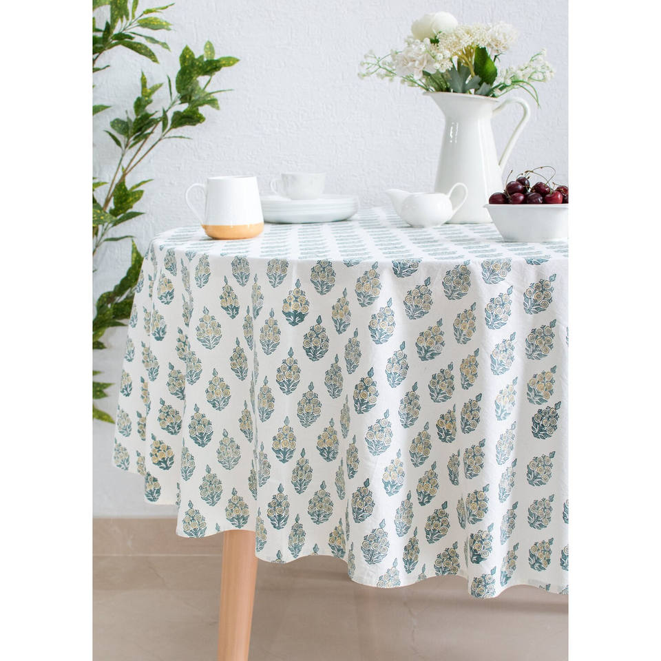 ผ้าปูโต๊ะผ้าฝ้าย100% นุ่มแบบคลาสสิกพิมพ์ลายใบไม้ใช้ซ้ำได้ทันสมัยและมีสไตล์ซักในอินเดียอย่างยั่งยืน