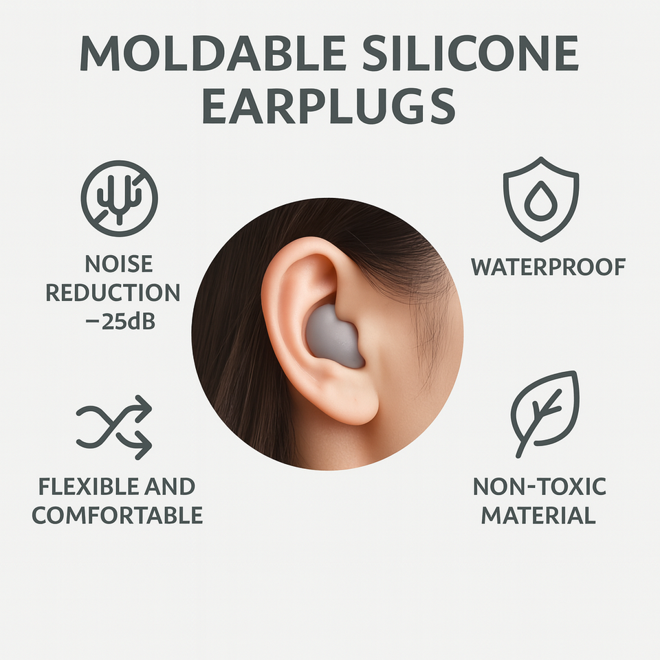 ที่อุดหูซิลิโคนแบบขึ้นรูปได้ ใช้ซ้ำได้ สำหรับเครื่องบิน