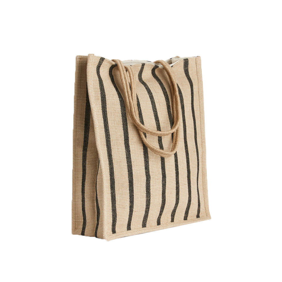 ถุงผ้าปอกระเจาธรรมชาติแบบนำกลับมาใช้ใหม่ได้มีซิปสายรัดแข็งแรงสำหรับเดินทางปิกนิกช้อปปิ้งชายหาดนอกบ้านในชีวิตประจำวัน