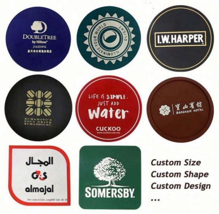 แผ่นรองแก้วยางแบบใช้ซ้ำได้ แผ่นรองแก้วไวนิล แผ่นรองแก้วแบบกำหนดเองสำหรับเครื่องดื่ม แบบพิมพ์ลาย