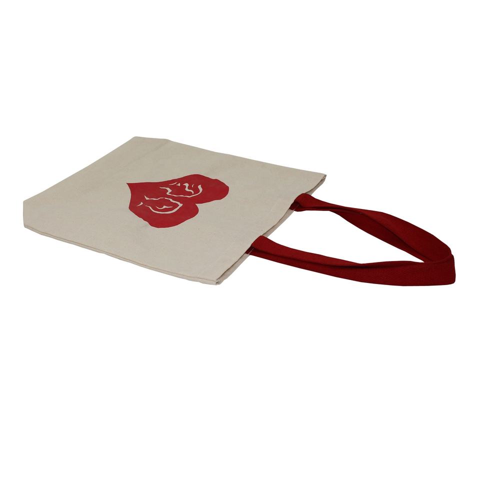 ถุงช้อปปิ้งแบบใช้ซ้ำได้ พิมพ์ลายสีเดียวตามสั่ง ด้ามจับผ้าฝ้าย 8 ออนซ์ ถุงผ้าแคนวาสธรรมชาติสำหรับวันวาเลนไทน์