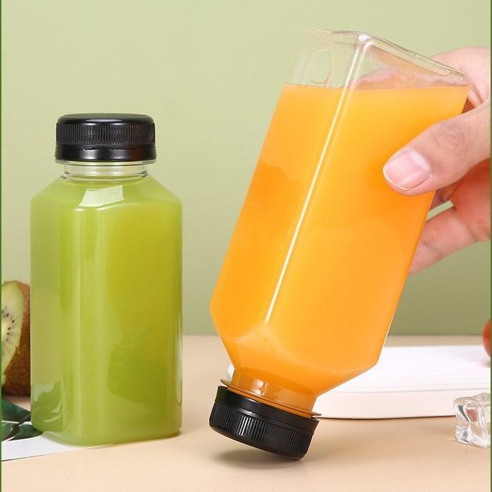 ขวดน้ำดื่มทรงสี่เหลี่ยม16oz 500ml ขวดน้ำดื่มพลาสติกสำหรับสัตว์เลี้ยงพร้อมฝาอลูมิเนียมเกรดใช้ซ้ำได้