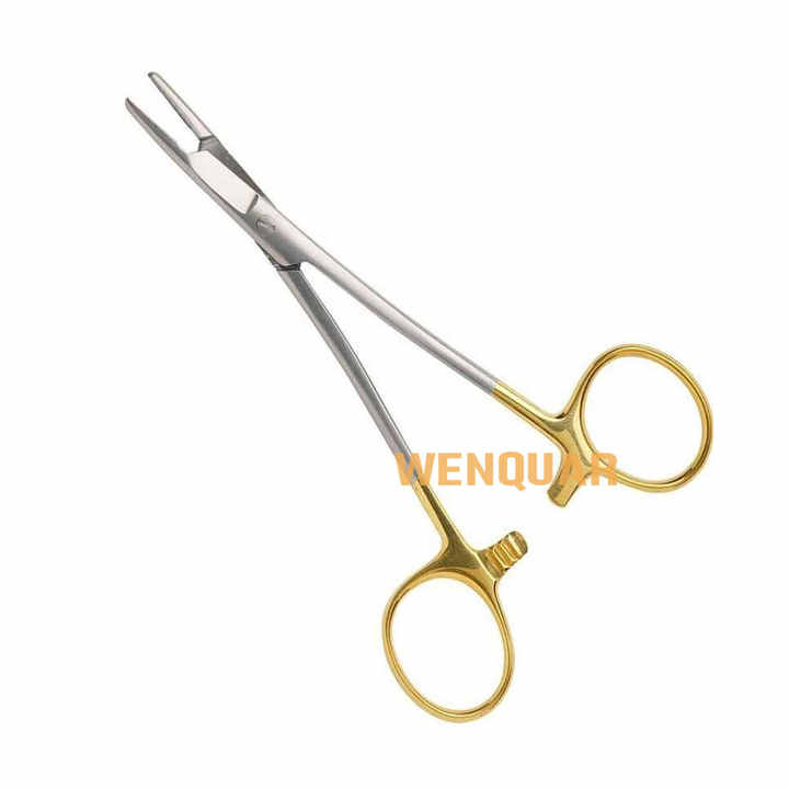 คีมหนีบสัตวแพทย์สีทองครึ่ง12.5ซม. 14ซม. ที่ใส่เข็ม TC Olsen และกรรไกรเย็บแผลเครื่องมือที่ใช้มือ