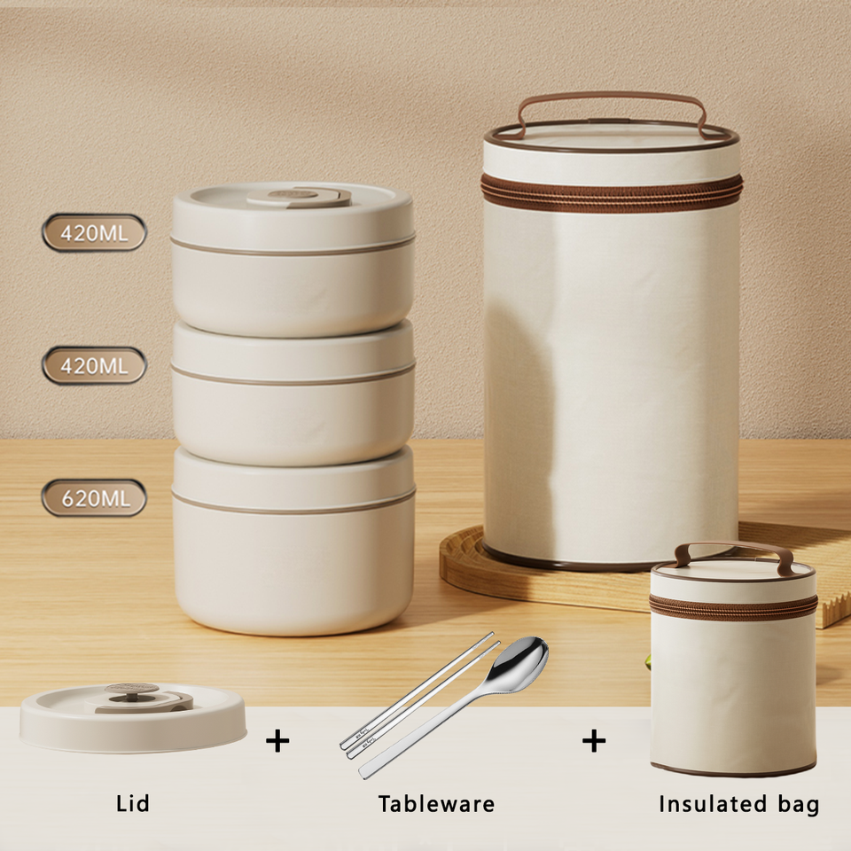 ภาชนะเก็บอาหารแบบถอดประกอบได้ 3 ช่อง 3 ชั้น ทำจากสแตนเลส 316 ทนความร้อน กันรั่วซึม ใช้ซ้ำได้ ทำความสะอาดง่าย