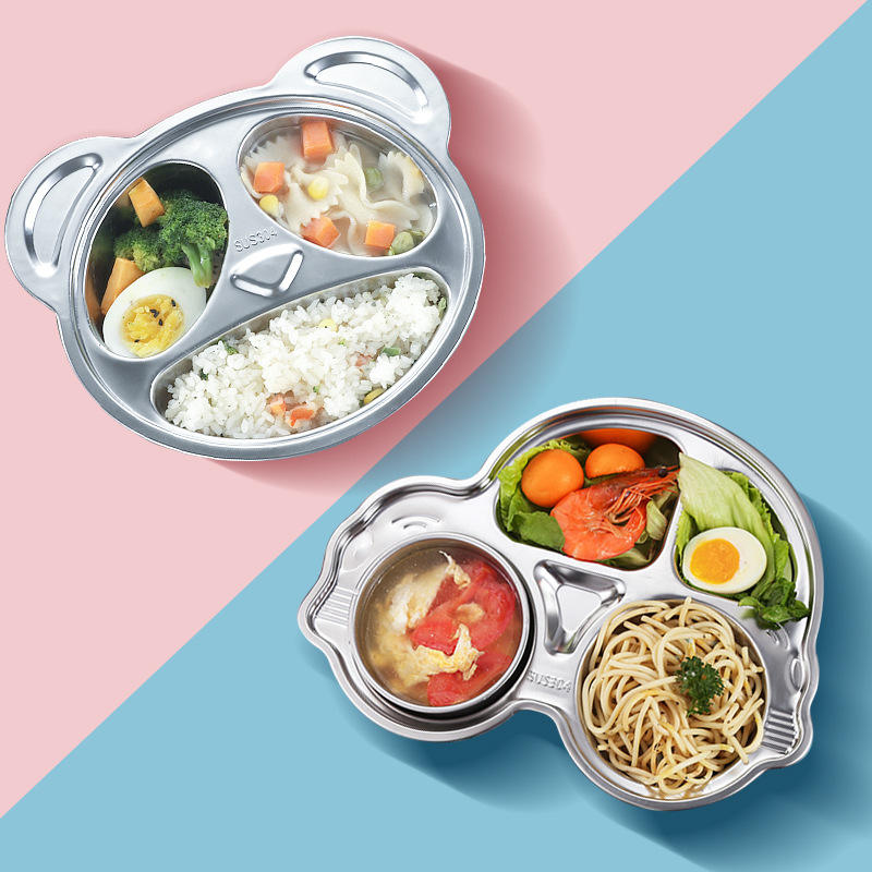 นำมาใช้ใหม่ Unbreakable 316L/304แผ่นทารกยูโรมาตรฐานสแตนเลสอาหารค่ำทารกจานแบ่งถาด