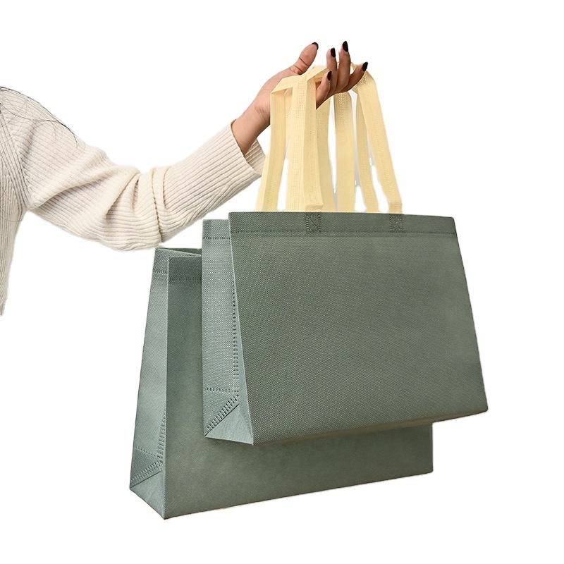 ถุงผ้านอนวูฟเวนกันน้ำใช้ซ้ำได้พร้อมที่จับผ้าใบแบบพกพาสำหรับช้อปปิ้งและปาร์ตี้