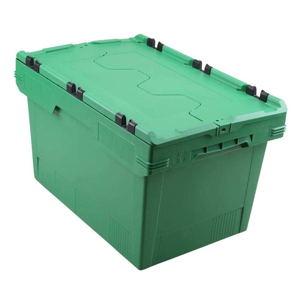 ภาชนะสำหรับขนส่งพลาสติกสีเขียวความจุ58ลิตร600x400x350มม. ปิดผนึกได้อเนกประสงค์สามารถนำกลับมาใช้ใหม่ได้