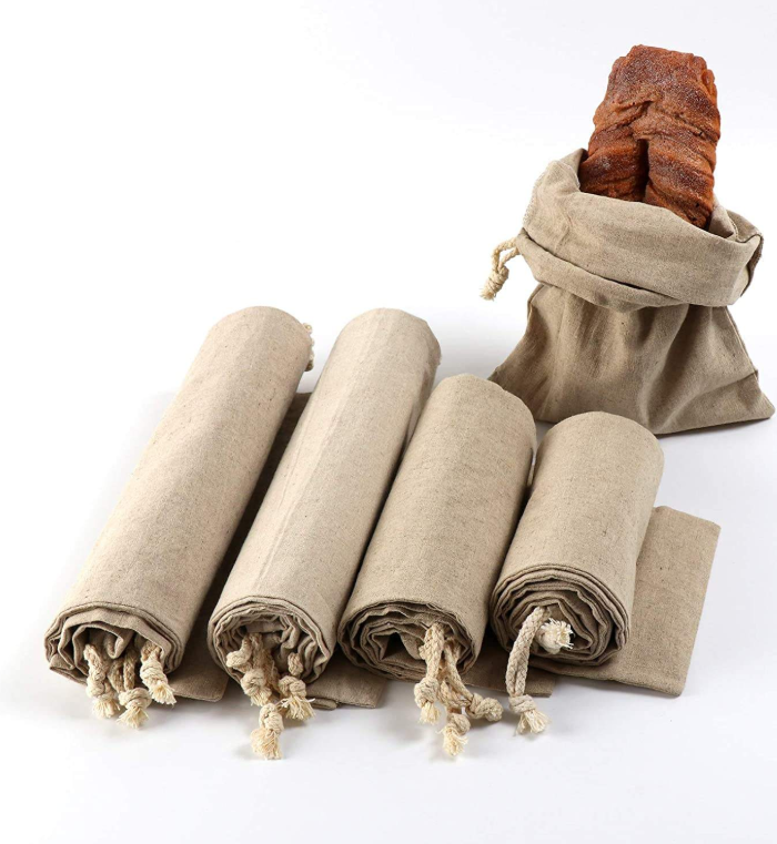 ถุงผ้าลินินพิมพ์ลายธรรมชาติ ทำมือ 100% สำหรับเก็บอาหารและใส่ขนมปัง ใช้ซ้ำได้