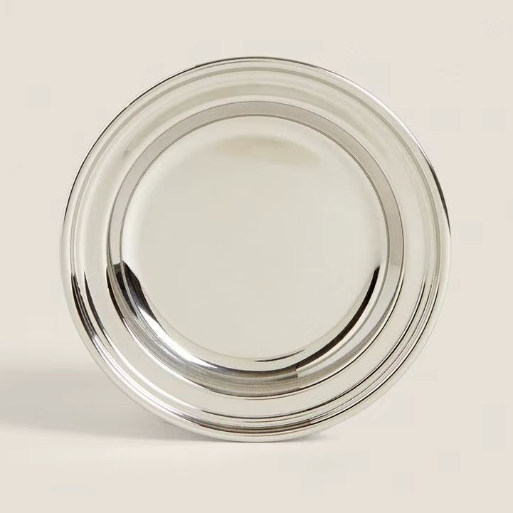 จานโลหะนำกลับมาใช้ใหม่ได้ ภาชนะสำหรับจัดเลี้ยงมืออาชีพ จานเสิร์ฟสำหรับโรงแรม